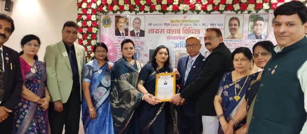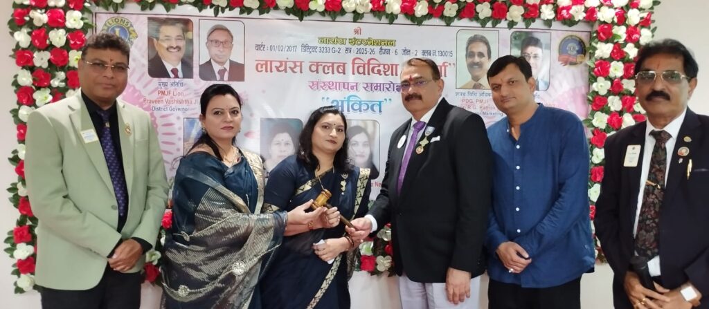 लायंस क्लब विदिशा आर्या का अधिष्ठापन समारोह गवर्नर प्रवीण वशिष्ठ जी की उपस्थिति में अशोका होटल बस स्टैंड में हुआ संपन्न