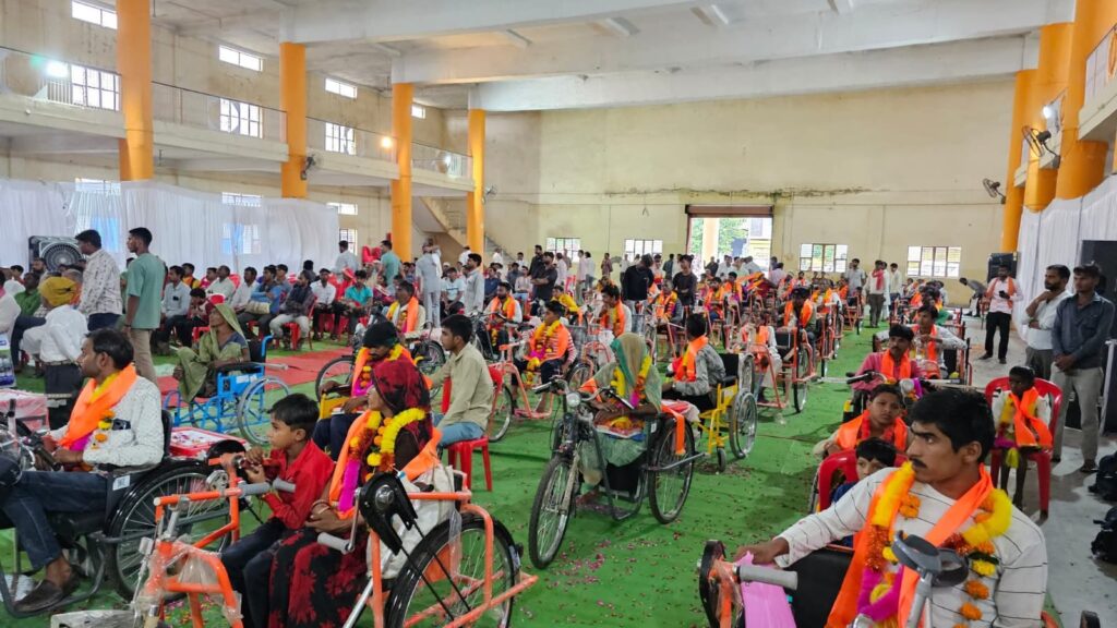 चंद्रमोहन सभागार में आयोजित दिव्यांग शिविर में विकलांगों को मिली बैटरी ट्राय सायकल