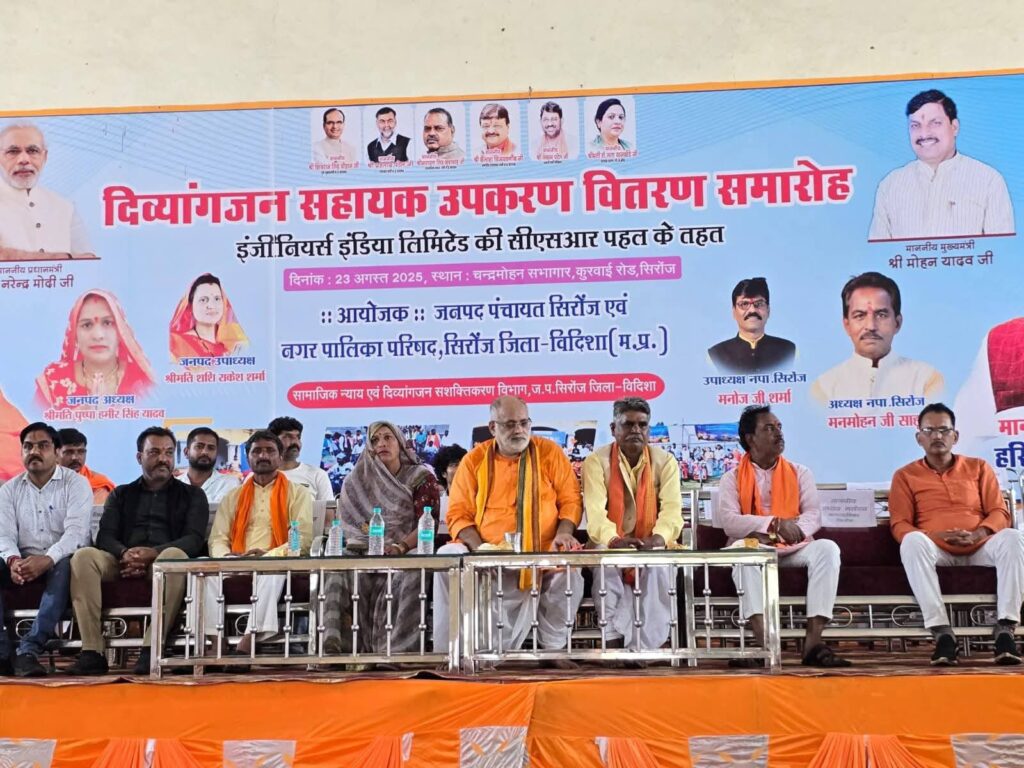 कार्यक्रम के दौरान उन्होंने शहरी एवं ग्रामीण स्तर पर दिव्यांगजनो की वर्तमान भौतिक स्थिति की जानकारी लेते हुए नपा सीएमओ तथा जनपद सीईओ को निर्देशित करते हुए कहा अभियान चलाकर दिव्यांगो को चिन्हित करे तथा उनको विदिशा ले जाकर उनके प्रमाणपत्र बनवाएं । शिविर के दौरान वार्ड क्रमांक दस में रहने वाले दिव्यांग अनुज जैन ने प्रमाण पत्र नहीं बन पाने की अपनी परेशानी से विधायक शर्मा को अवगत कराया तो उन्होंने मौके पर ही अधिकारियों को एक वाहन से गुरुवार को विदिशा जिला अस्पताल ले जाकर पात्रता के प्रमाण पत्र बनवाने के निर्देश प्रदान किए। इसके पूर्व कार्यक्रम का शुभारंभ मां सरस्वती के चित्र पर दीप प्रज्वलन एवं कन्या पूजन के साथ शुरू हुआ। कार्यक्रम का संचालन सचिन शर्मा ने एवं आभार जनपद सीईओ आशीष अग्रवाल ने व्यक्त किया। इस अवसर पर प्रमुख रूप से जनपद अध्यक्ष पुष्पा हमीर सिंह यादव, नपाध्यक्ष मनमोहन साहू, जिला पंचायत उपाध्यक्ष दरयाब सिंह कुर्मी, जनपद सदस्य कलेक्टर सिंह यादव सहित जनपद सदस्य एवं नपा के पार्षदगण तहसीलदार संजय चौरसिया नपा सीएमओ रामप्रकाश साहू सहित जनप्रतिनिधि एवं दिव्यांगो के परिजन मौजूद रहे।