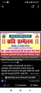 31 अगस्त को रामगढ़ में होगा कवि सम्मेलन