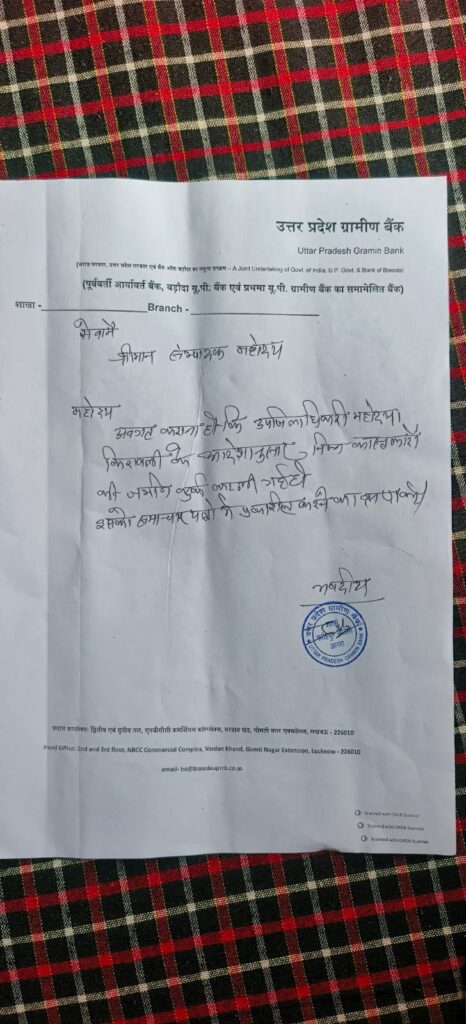 आर्यावर्त बैंक की बकाया धनराशि जमा ना होने पर किसानों के खिलाफ कुर्की आदेश