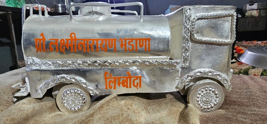 श्रद्धालू ने किया भगवान देवनारायण को चांदी का ट्रक टैंकर भेट