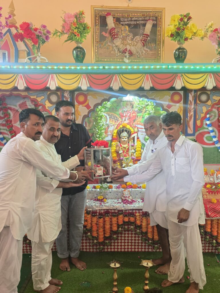 इस अवसर पर भाजपा जिला अध्यक्ष ज्ञानसिंह गुर्जर और ग्राम सरपंच लालसिंह गुर्जर द्वारा पूजन आरती कर यह भेट किया मंदिर पर बड़ी संख्या में श्रद्धालु मौजूद रहे!