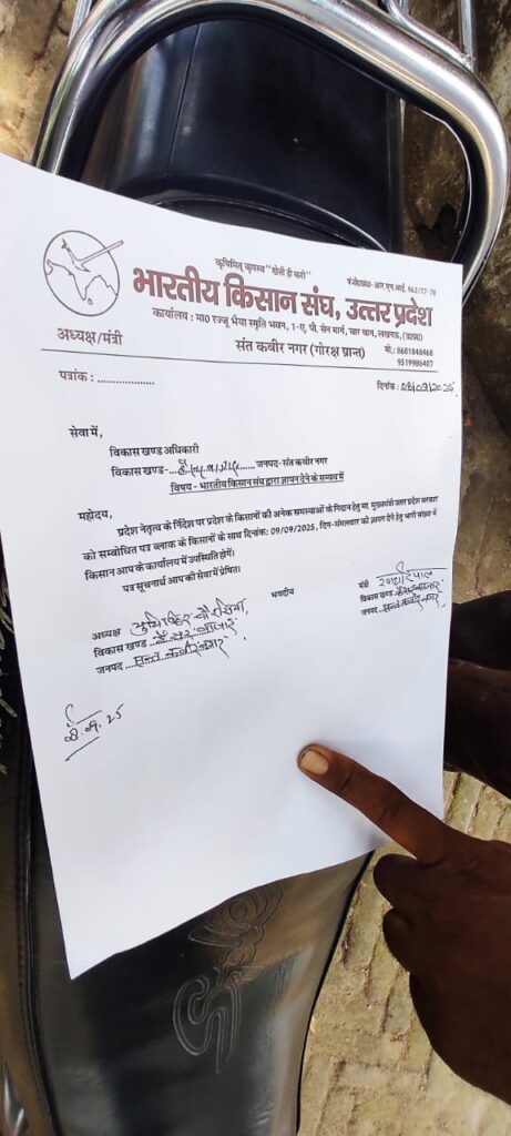 भारतीय किसान संघ संत कबीर नगर के हैंसर बाजार ब्लॉक में ब्लॉक एवं ग्राम समितियों के अध्यक्ष, मंत्री, उपाध्यक्ष सहित कार्यकारिणी सदस्यों वीडियो हैंसर बाजार को दिया ज्ञापन । कार्यक्रम में गोरक्षा एवं अवध प्रांत के संगठन मंत्री श्री अरविंद जी भाई साहब का विशेष उद्बोधन प्राप्त हुआ।