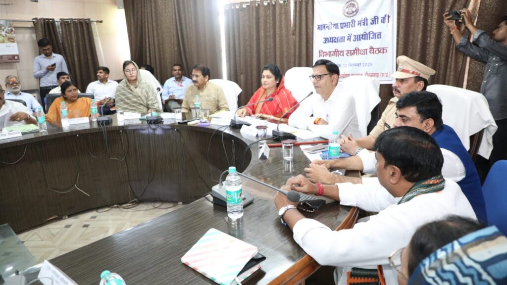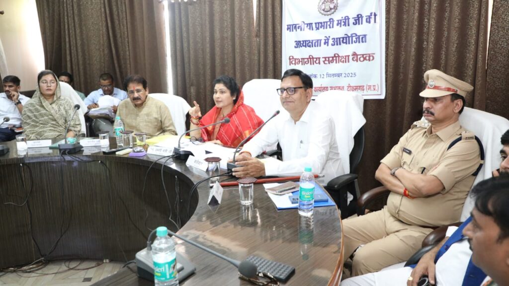 टीकमगढ़:-टीकमगढ़,12 सितम्बर 2025/ मध्यप्रदेश शासन की पिछड़ा वर्ग एवं अल्पसंख्यक कल्याण, विमुक्त घुमन्तु अर्द्धघुमन्तु कल्याण विभाग राज्यमंत्री (स्वतंत्र प्रभार) एवं टीकमगढ़ जिले की प्रभारी मंत्री कृष्णा गौर की अध्यक्षता में आज कलेक्ट्रेट सभाकक्ष में शासन की योजनाओं/कार्यक्रमों की समीक्षा बैठक अयोजित की गई। इस अवसर पर सरोज राजपूत, जिला पंचायत अध्यक्ष उमिता राहुल सिंह, टीकमगढ़ विधायक यादवेन्द्र सिंह बुन्देला, खरगापुर विधायक चंदारानी गौर, सांसद प्रतिनिधि विवेक चतुर्वेदी, पूर्व मंत्री राहुल सिंह, पूर्व विधायक टीकमगढ़ राकेश गिरि गोस्वामी, पूर्व विधायक पृथ्वीपुर डॉ. शिशुपाल सिंह यादव, जनपद पंचायत जतारा अध्यक्ष रेखा महेश यादव, अन्य जनप्रतिनिधि सहित जिलाधिकारी विवेक श्रोत्रिय, पुलिस कप्तान मनोहर सिंह मंडलोई, जिला पंचायत सीईओ नवीत कुमार धुर्वे तथा संबंधित अधिकारी उपस्थित रहे।