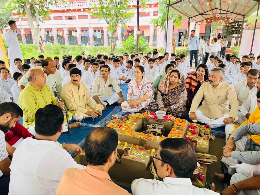 गुरुकुल विद्यालय के मुख्य अधिष्ठाता ने मुख्य अतिथि डॉक्टर कल्पना सैनी , जिला अध्यक्ष आशुतोष शर्मा,नगर विधायक मदन कौशिक, राज्य मंत्री डॉ जयपाल चौहान ,राज्य मंत्री सुनील सैनी को पटका पहनकर उनका स्वागत किया।हवन यज्ञ में मुख्य यजमान के रूप में पहुंची राज्यसभा सांसद डॉक्टर कल्पना सैनी ने कहा कि मुख्यमंत्री पुष्कर सिंह धामी के नेतृत्व में उत्तराखंड राज्य प्रगति के पथ पर अवसर है । मुख्यमंत्री पुष्कर सिंह धामी के द्वारा उत्तराखंड में समान नागरिक संहिता, नकल विरोधी कानून, धर्मांतरण विरोधी कानून बनाकर साहसिक कार्य किये गए हैं।आज हम उनके जन्म दिवस पर उनके दीर्घायु होने की कामना करते हैं।