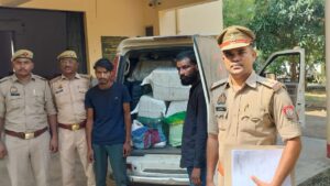 पुलिस अधीक्षक सोनभद्र श्री अशोक कुमार मीणा द्वारा अपराध एवं अपराधियों पर प्रभावी अंकुश लगाये जाने हेतु व मादक पदार्थों की तस्करी में संलिप्त गिरोह के विरुद्ध चलाये जा रहे अभियान के क्रम में अपर पुलिस अधीक्षक (ऑपरेशन) श्री त्रिभुवन नाथ त्रिपाठी निर्देशन में एवं क्षेत्राधिकारी सदर श्री राज सोनकर के पर्यवेक्षण में दिनांक 17.09.2025 को समय 19.30 बजे मुखबिर की सूचना पर थाना मांची की पुलिस ने मादक पदार्थों की तस्करी करने वाले 02 नफर अभियुक्तों 01. मुकेश कुमार यादव पुत्र विजय यादव निवासी अधौरा थाना अधौरा जनपद कैमूर भभुआ बिहार उम्र लगभग 28 वर्ष 02. दिनेश शर्मा पुत्र विजयमल शर्मा निवासी ग्राम खीरी थाना भगवानपुर जनपद कैमूर भभुआ बिहार उम्र लगभग 20 वर्ष को स्कॉर्पियो गाड़ी में पीछे छिपाकर अवैध शराब बिहार चुनाव के दृष्टिगत ऊंचे दामों पर बेचने के लिए सोनभद्र से बिहार ले जाते समय कुंहकू पथरकुआं गांव मोड़ से किया गया गिरफ्तार, कब्जे से 8 PM 24 पेटी में, इंपीरियल ब्लू 4 पेटी एवं रायल स्टेज ब्रांड का 4 पेटी अवैध अंग्रेजी शराब तथा किंग फिशर ब्रांड का बीयर 3 पेटी में कुल 306 लीटर शराब (अनुमानित कीमत 03 लाख रुपये) बरामद किया गया। इस बरामदगी व गिरफ्तारी के सम्बन्ध में थाना मांची पर मु0अ0सं0-48/2025 धारा 60/63/72 आबकारी एक्ट का अभियोग पंजीकृत कर विधिक कार्यवाही करते हुए दोनों अभियुक्तों को मा0 न्यायालय भेजा गया।