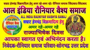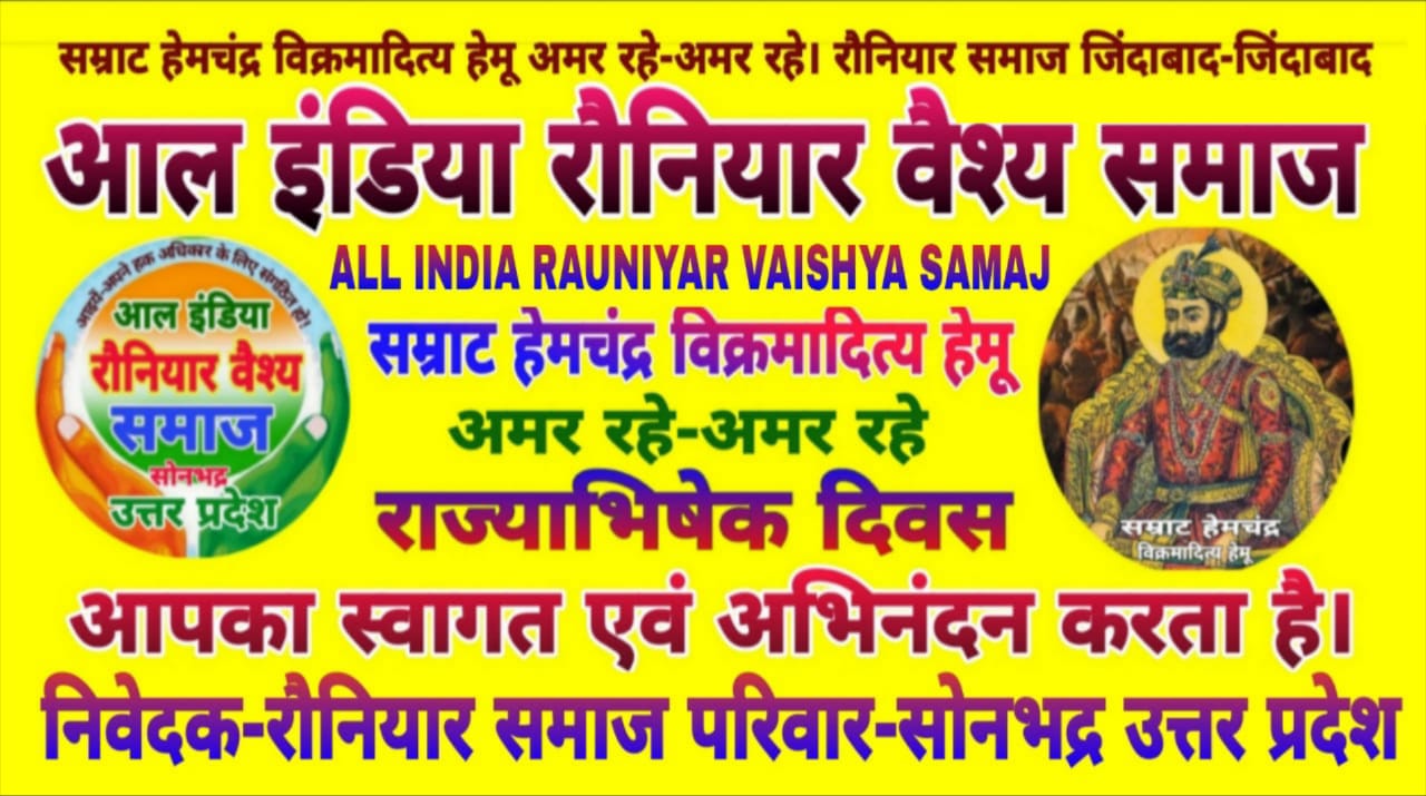 सोनभद्र- रौनियार समाज के अग्रज सम्राट हेमचंद्र विक्रमादित्य हेमू जी के राज्याभिषेक दिवस पूजन उत्सव कार्यक्रम का आयोजन किया गया है