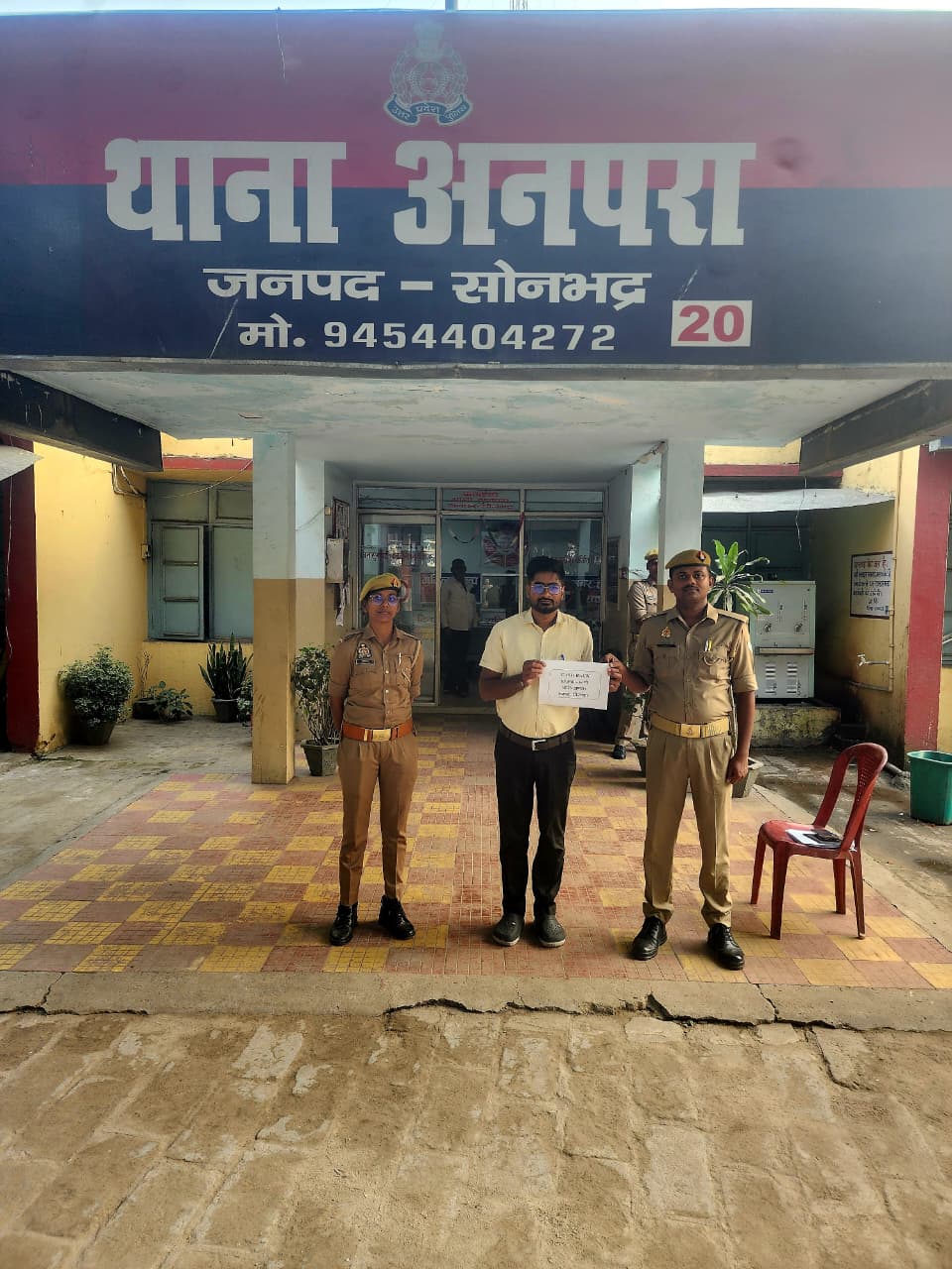 सोनभद्र, अनपरा — पुलिस अधीक्षक श्री अभिषेक वर्मा के कुशल निर्देशन एवं जनपद में साइबर अपराधियों के विरुद्ध चलाए जा रहे विशेष अभियान के अंतर्गत, अपर पुलिस अधीक्षक (मुख्यालय) तथा क्षेत्राधिकारी पिपरी के मार्गदर्शन में थाना अनपरा पुलिस एवं साइबर सेल टीम को एक बड़ी सफलता प्राप्त हुई है।