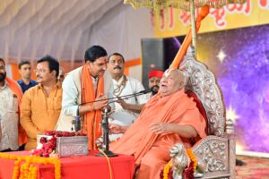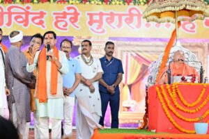 केंद्रीय मंत्री तोखन साहू ने भागवत कथा में लिया श्री रामभद्राचार्य का आशीर्वाद, युवाओं को भगवान श्रीकृष्ण जी के जीवन से प्रेरणा लेने के लिए किया प्रेरित,