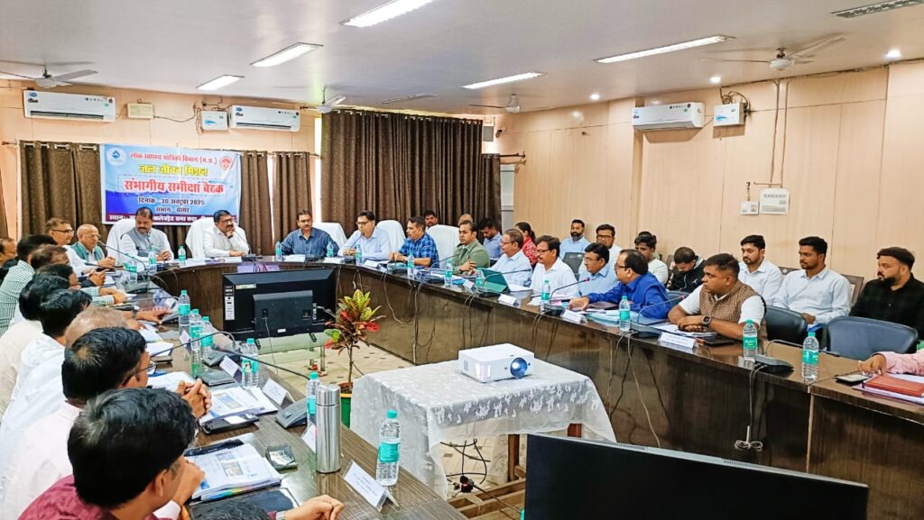 बैठक मेें संभाग के सभी जिलों की एकल एवं सामूहिक नल जल योजनाओं की पीपीटी के माध्यम से समीक्षा की गई।