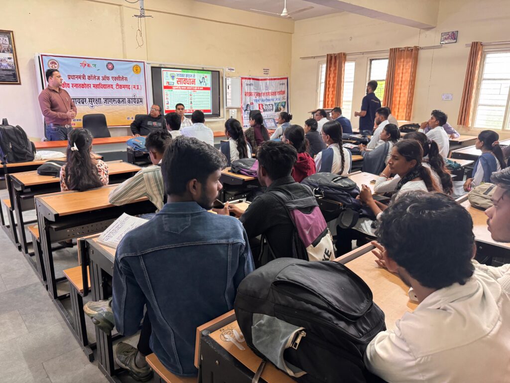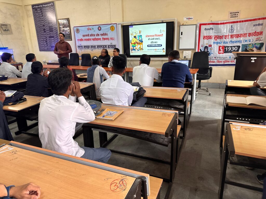 राष्ट्रीय साइबर सुरक्षा माह के अवसर पर पुलिस अधीक्षक मनोहर सिंह मंडलोई* के कुशल निर्देशन एवं मार्गदर्शन में साइबर सेल टीकमगढ़ द्वारा आज दिनांक 30 अक्टूबर 2025 को शासकीय पी.जी. कॉलेज, टीकमगढ़ में एक साइबर जागरूकता कार्यशाला का सफल आयोजन किया गया।