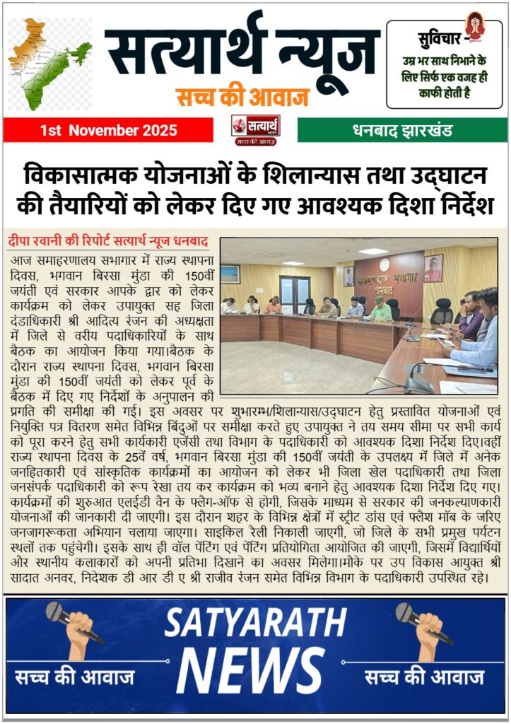वहीं राज्य स्थापना दिवस के 25वें वर्ष, भगवान बिरसा मुंडा की 150वीं जयंती के उपलक्ष्य में जिले में अनेक जनहितकारी एवं सांस्कृतिक कार्यक्रमों का आयोजन को लेकर भी जिला खेल पदाधिकारी तथा जिला जनसंपर्क पदाधिकारी को रूप रेखा तय कर कार्यक्रम को भव्य बनाने हेतु आवश्यक दिशा निर्देश दिए गए।