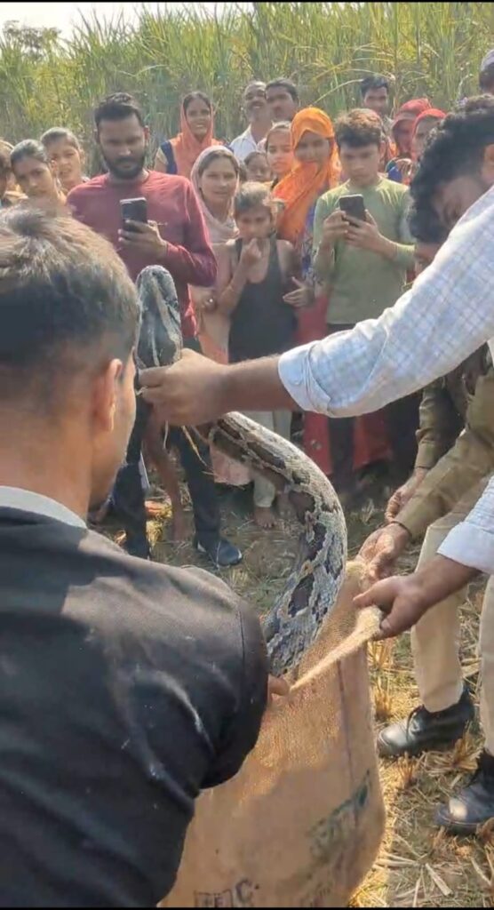 अजगर की खबर फैलते ही देखने वालों की भीड़ इकट्ठा हो गई, लोगों ने तुरंत फॉरेस्ट विभाग को दी सूचना, फॉरेस्ट टीम तुरंत अपने दल बल के साथ किसान के खेत में पहुंची इस जंगली जीव अजगर को लिया हिरासत में लोगों के अंदर समाया हुआ डर समाप्त हो गया ।