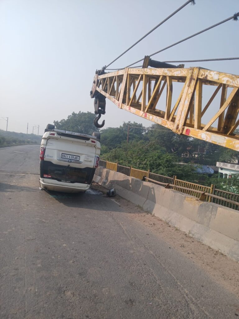 सत्यार्थ न्यूज कानपुर देहात। भोगनीपुर क्षेत्र के अन्तर्गत भोगनीपुर से कानपुर जाने वाली हाइवे लाइन पर एक स्कॉर्पियो कार संख्या UP 92 Y 1786 डिवाइडर से टकराने के कारण पलट गई है । एक स्कार्पियो क्षतिग्रस्त हालत मे हाईवे पर पड़े होने की सूचना पर देवीपुर चौकी से प्रशासन घटना स्थल पर पहुंचा l चौकी प्रभारी अभिषेक चौहान ने बताया कि लॉ एंड आर्डर की कोई समस्या नहीं है l एन एच ए आई से सम्पर्क कर क्रेन बुलवाई गयी है l यातायात बाधित नहीं है l गाड़ी क्रेन से उठवा कर चौकी आ गयी है । गाड़ी में एक बच्ची व 6 लोग सवार थे । किसी को गंभीर चोट नहीं है । 3 लोगो को हलकी चोट है उनको प्राइवेट वाहन से जिला अस्पताल भेज दिया गया है । उन्होंने आगे बताया कि परिवार मोहम्मदाबाद से लखनऊ अपने पिताजी का इलाज कराने जा रहा था । आसिफ पुत्र जैनुल वाहन चला रहे थे । अपने पिता को जैनुल इलाज़ के लिए लखनऊ ले जा रहे थे । सेंगूर नदी के ऊपर मावर हाईवे पर डिवाइडर से टकरा कर पलट गयी स्कार्पियो में हुए घायलों को जिला अस्पताल इलाज के लिए भेजा गया है।