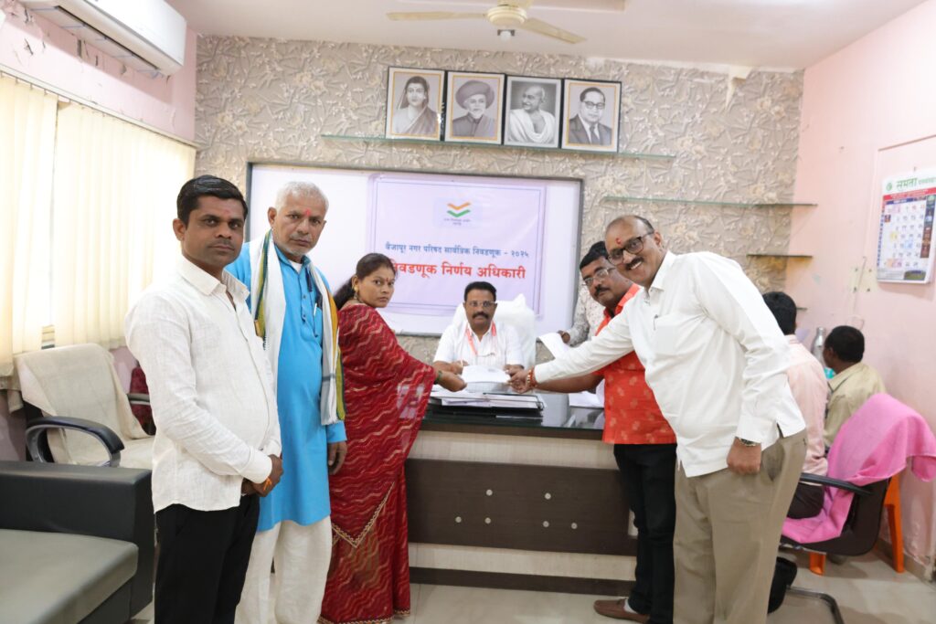 स्थानिक स्वराज्य संस्थेच्या निवडणुकीमध्ये वैजापूर नगर परिषदेच्या वतीने प्रभाग क्रमांक 12 मधील पूजा संजय क्षीरसागर यांनी आज आपल्या समर्थकांसह उमेदवारी अर्ज दाखल केलेला आहे जनतेच्या विविध प्रश्न सोडवण्यासाठी रिंगणात उतरलेले महिला उमेदवार आहे. यावेळी उपस्थित माजी नगराध्यक्ष डॉक्टर दिनेश भाऊ परदेशी काँग्रेस शहर अध्यक्ष नितीश शाह उपशहर प्रमुख सतीश धुळे एडवोकेट सागर भाऊ थेट संभाजी ब्रिगेडचे जिल्हा अध्यक्ष धनंजय गायकवाड तालुका अध्यक्ष वाल्मीक पाटील इंगळे शहराध्यक्ष संजय शिरसागर तालुका संघटक गणेश निंबाळकर उपस्थित होते