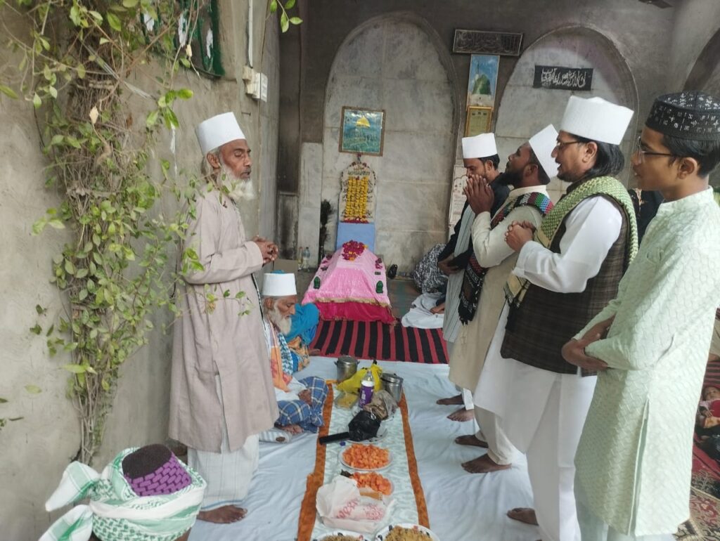 आगरा हजरत शाह अमीर अबुल उलाह सैयदना सरकार के समीप हजरत सूफी नासिर मियां अजीजी रहमतुल्ला अलेह की फातिहा का आयोजन बड़े ही अदब के साथ दरगाह पर की गई दरगाह के सज्जादा नशीं सूफी मकसूद मियां अजीजी ने बताया कि बाद नमाज जोहार दरगाह पर कुरान पढ़ा गया इसके बाद फातिहा पढ़ी गई महफिल ए कव्वाली का आयोजन भी किया गया वही लंगर भी तकसीम किया गया आए हुए सभी मुरीदन से सूफी मकसूद मियां ने कहा कि अल्लाह तबारक ताला ने इन वालियों को अपना दोस्त कहा है और कुरान में भी इन वाली अल्लाह का जिक्र अल्लाह तबारक ताला ने किया है कुरान पाक में इन वाली अल्लाहू से मोहब्बत करने की बात कही है और कहां है कि मेरा जो भी बंदा इन वाली अल्लाह हूं से दुनिया में मोहब्बत करेगा मैं कल कयामत के दिन उसे बंदे का हिसाब अपने वाली अल्लाह के साथ ही करूंगा क्योंकि इन वाली अल्लाह ने अपने दुनिया में रहते हुए सिर्फ मोहब्बत का पैगाम थी पूरी दुनिया को दिया पांच वक्त की नमाज इन्होंने कभी नहीं छोड़ी जिक्र इलाही हर समय यह वाली अल्लाह करते रहे इसलिए आज अल्लाह तबारक ताला में अपने दोस्त को अपने पास बुलाने के बाद भी दुनिया में इसे मोहब्बत करने वाले का हस आर उनके साथ रखा है क्योंकि अल्लाह तबारक ताला इनसे राजी हुआ और इन अल्लाह के वालियों ने अल्लाह को अपने लिए राजी किया ठीक ऐसे ही हमको भी इन वाली अल्लाह हूं के बताए रास्ते पर चलकर अपने लिए अल्लाह को राजी करना है और अल्लाह की इबादत करनी है क्योंकि कल कयामत के दिन अल्लाह हम सभी से इन वाली अल्लाह के बारे में पूछेगा कि मैं दुनिया में अपने दोस्तों के लिए मोहब्बत करने का हुकुम सभी को दिया था तो फिर मेरे दोस्तों से मोहब्बत तुम लोगों ने क्यों नहीं की