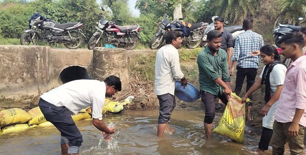 पांढुर्णा – कलेक्टर श्री नीरज कुमार वशिष्ठ के निर्देशानुसार म.प्र.जन अभियान परिषद विकासखंड सौंसर के सेक्टर क्रमांक 1 की ग्राम पंचायत बानाबकोड़ा में नवांकुर संस्था यूथ ऑफ सौंसर असोसिएशन द्वारा जन अभियान परिषद छिंदवाड़ा के जिला समन्वयक श्री अखिलेश जैन एवं विकासखंड समन्वयक श्री अनिल बोबडे के मार्गदर्शन में जनप्रतिनिधि ग्राम पंचायत सरपंच श्रीमती राशिका बेंडे पूर्व जनपद पंचायत सदस्य श्री राधेश्याम बेंडे, समाजसेवी श्री राजेंद्र नखाते, सहायक सचिव श्रीमती चेतना जूनघरे की उपस्थिति में नवांकुर संस्था यूथ ऑफ सौंसर एसोसिएशन के अध्यक्ष श्री योगेश सोमकुंवर, सचिव श्री गोपाल कोठे, वृक्ष मित्र श्री अरुण गुरुजी ठाकरे के माध्यम से जल संचय संरक्षण अभियान में प्राकृतिक जल स्रोत पर बोरी बंधान बी‌एसडब्ल्यू, एमएसडब्ल्यू, समाजसेवी विद्यार्थी और परामर्शदाताओं के सहयोग से बोरी बंधान का कार्य किया गया। जिसमें बोरियों मे रेत मिट्टी भरकर बहते हुए पानी को रोककर बंधान बनाया गया।
