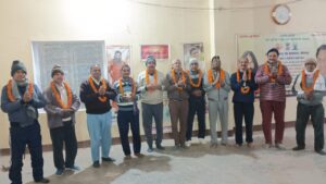पतंजलि योग परिवार द्वारा नियमित योग साधकों का माल्यार्पण कर किया गया सम्मान
