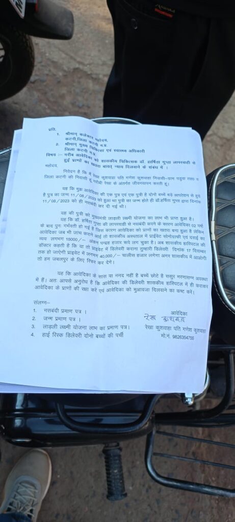 कटनी जिले में सरकारी डॉक्टर की लापरवाही से गरीब महिला की जान पर खतरा, तीसरी संतान के लिए मुआवजे की गुहार