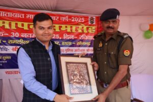 रामलीला मैदान डाला में आज पुलिस अधीक्षक सोनभद्र श्री अभिषेक वर्मा द्वारा यातायात जागरूकता माह – नवम्बर 2025 के समापन समारोह का दीप प्रज्वलित कर शुभारंभ किया गया। कार्यक्रम में आदित्य बिरला इंटर कॉलेज एवं पीएम श्री राजकीय बालिका इण्टर कॉलेज के छात्र-छात्राओं द्वारा प्रस्तुत नुक्कड़ नाटक ने यातायात नियमों के पालन हेतु उपस्थित जनसमूह को जागरूक किया।
