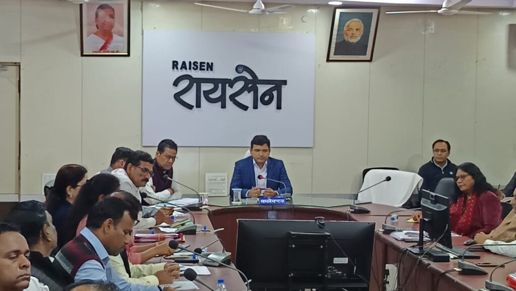 रायसेन,/कलेक्ट्रेट सभाकक्ष में आयोजित टीएल बैठक में कलेक्टर श्री अरूण कुमार विश्वकर्मा द्वारा विभागीय योजनाओं, गतिविधियों तथा योजनाओं की प्रगति की विस्तृत समीक्षा की गई। बैठक के प्रारंभ में कलेक्टर श्री विश्वकर्मा ने जिले में मतदाता सूची का गहन पुनरीक्षण एसआईआर की प्रगति की विधानसभावार जानकारी लेते हुए एसडीएम, तहसीलदार, जनपद सीईओ तथा सीएमओ को मिलकर एसआईआर अंतर्गत गणना पत्रकों का डिजिटलाईजेश कार्य को आगामी तीन दिवस में प्राथमिकता से पूर्ण कराने के निर्देश दिए। उन्होंने कहा कि एसआईआर कार्य की प्रगति की प्रतिदिन जूम वीसी के माध्यम से समीक्षा की जाएगी।