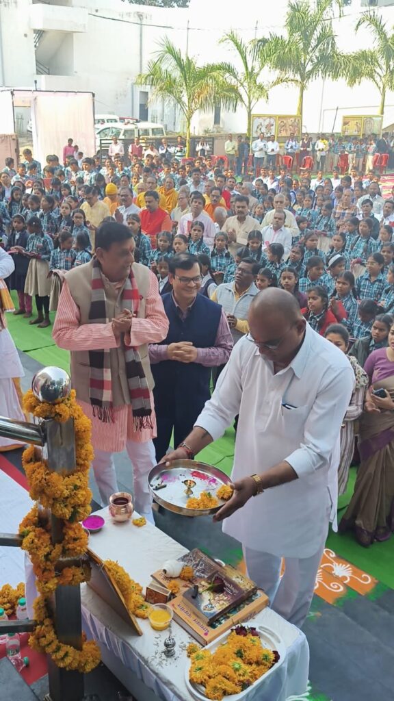 पांढुर्णा – कलेक्टर श्री नीरज कुमार वशिष्ठ के मार्गदर्शन में आज लक्ष्मी स्मृति भवन के प्रांगण में गीता जयंती के अवसर पर अंतर्राष्ट्रीय गीता महोत्सव का आयोजन हुआ। कार्यक्रम में मुख्य अतिथि महामंडलेश्वर स्वामी श्री अखिलेश्वरानंद गिरी महाराज एवं जाम सावली मंदिर से श्री गयाप्रसाद जी पांडे उपस्थित रहे।