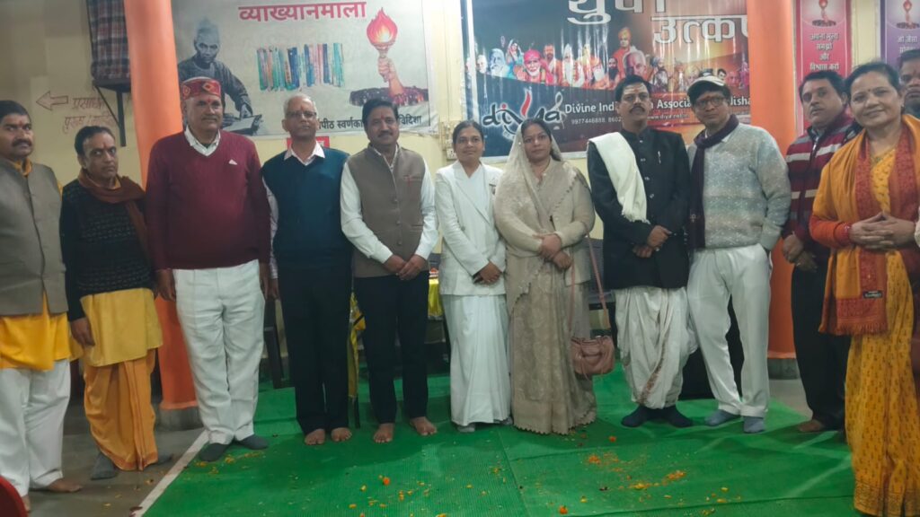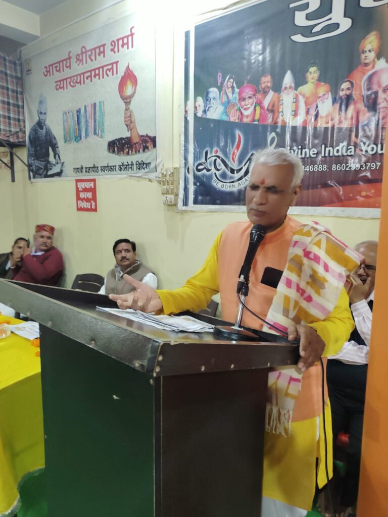 अरुण कुमार सोनी ने गीता के श्लोक ‘कर्मण्येवाधिकारस्ते मां फलेषु कदाचन’बहुत प्यारी व्याख्या की । इस आधे श्लोक को बहुत गहराई के साथ स्पष्ट किया। आपने कहा कि इसका शाब्दिक अर्थ तो सभी जानते हैं। परंतु हमारे जीवन में इसका उतरना हो तभी यथार्थ में जानना कहलाएगा। आपने कहा कि इसका चिंतन मनन बहुत जरूरी है, तभी यह हमारे जीवन में उतरता है। कार्यक्रम की अध्यक्षता एस ए टी आई कॉलेज के डायरेक्टर श्री वाय .के जैन जी ने की एवं कार्यक्रम का संचालन डॉ मनोज शास्त्री जी ने किया। विशेष अतिथि के रूप मे श्री मनोज कटारे जी कार्यक्रम में उपस्थित रहे। इस आयोजन के संबंध में जानकारी देते हुए कार्यक्रम के संयोजक मुकेश श्रीवास्तव ने बताया कि गायत्री प्रज्ञा पीठ स्वर्णकार कॉलोनी विदिशा में श्री राम व्याख्यान माला के अंतर्गत विभिन्न धार्मिक आध्यात्मिक विषयों पर व्याख्यान का आयोजन निरंतर किया जा रहा है। इसी क्रम मे गीता जयंती महोत्सव सप्ताहके अंतर्गत इस बार “गीता के ज्ञान का व्यावहारिक जीवन में महत्व” विषय पर व्याख्यान का आयोजन किया गया था । अपने उद्बोधन में उन्होंने बताया कि धर्म आध्यात्म और समाज सेवा के क्षेत्र में गायत्री परिवार आज विश्व की सबसे बड़ी संस्था है और विश्व के 80 देश में इसकी शाखाओ का विस्तार हो चुका है। देश भर में फैले 5000 से अधिक शक्तिपीठ , प्रज्ञा पीठ ,एवं गायत्री चेतना केंद्रों के माध्यम से जन जागृति का कार्य निरंतर किया जा रहा है ।