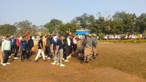 • लाठीचार्ज, स्टॉपिंग लाइन एवं शील्ड पोज़ीशन की प्रैक्टिस