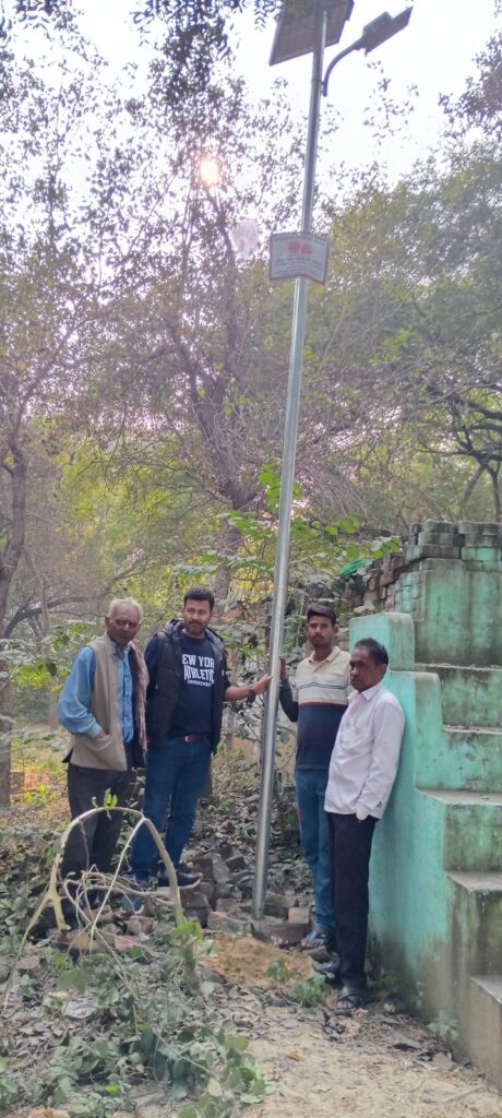 उत्तर प्रदेश सरकार की प्रमुख योजनाओं को धरातल पर जनता के लाभ के लिए व ग्रामीण क्षेत्रों के विकास के लिए लगातार उतारा जा रहा है। विधानसभा भोगनीपुर क्षेत्र में माननीय केबिनेट मंत्री श्री राकेश सचान जी के सानिध्य से समाजसेवी गोरे फौजी की पहल और विकास के प्रति समर्पण के तहत दिनांक 14 दिसंबर दिन रविवार को ग्राम पंचायत मोहम्मदपुर एवं भजनपुर में सुरक्षा के दृष्टिकोण कुछ महत्वपूर्ण स्थानों पर सोलर पैनल सिक्योरिटी लाइट स्टैबलिश की गई । जिससे आम जनता और स्कूल के बच्चों के साथ साथ महत्वपूर्ण सरकारी संस्थाओं को प्रकाश की रोशनी से जोड़ा गया । जिससे कि ग्राम पंचायत को विकास से जोड़ा जा सके। गोरे फौजी से हुई बातचीत के दौरान उन्होंने बताया कि अभी तो ये शुरुआत है इस तरह की सरकारी योजनाओं को धरातल पर जनता के लिए लगातार उतारा जाएगा ये हमारी टीम का संकल्प है जो आम जनमानस को सीधे लाभ पहुचायेंगी। श्री कृष्ण औद्योगिक इंटर कालेज, शाह हुसैन दादा मजार, प्राथमिक विद्यालय भजनपुर, व गोरे फौजी के फार्म हाउस आश्रम में लगवाई जा चुकी है और आगे चिन्हित सार्वजनिक स्थानों पर भी जल्द कुछ लाइटें स्टैब्लिश की जायेगी।