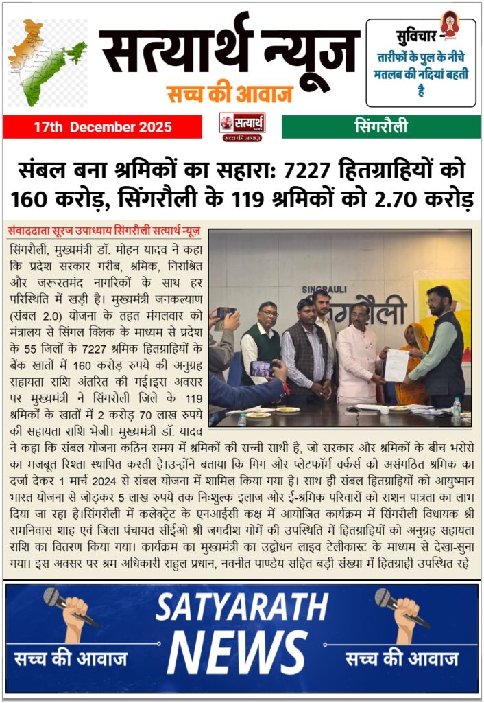 सिंगरौली से सूरज उपाध्याय की रिपोर्ट सत्यार्थ न्यूज़