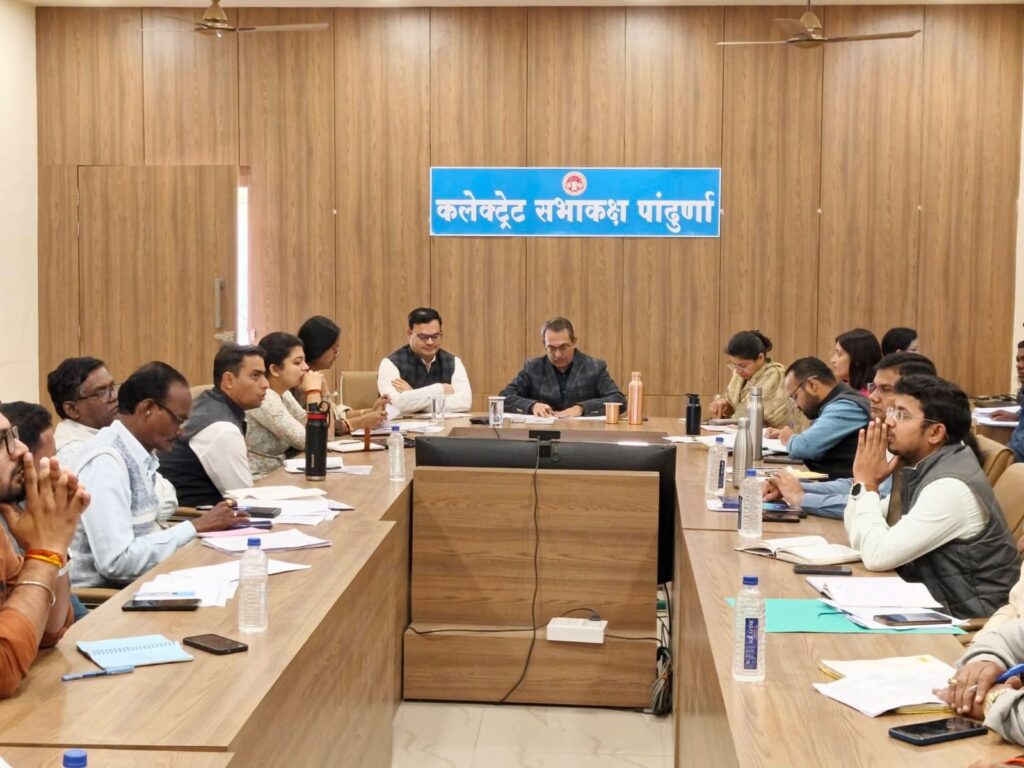 पांढुर्णा – कलेक्टर कार्यालय पांढुर्णा में समय-सीमा (TL) पत्रों की समीक्षा के दौरान कलेक्टर श्री वशिष्ठ द्वारा जिले के विभिन्न विभागों के लंबित प्रकरणों एवं जनसमस्याओं का गहन परीक्षण किया गया। समीक्षा में विकास कार्यों, अनुकंपा नियुक्ति, भूमि संबंधी प्रकरणों तथा जन शिकायतों के निराकरण की प्रगति की विस्तार से जानकारी ली गई और संबंधित अधिकारियों को आवश्यक दिशा-निर्देश दिए गए।