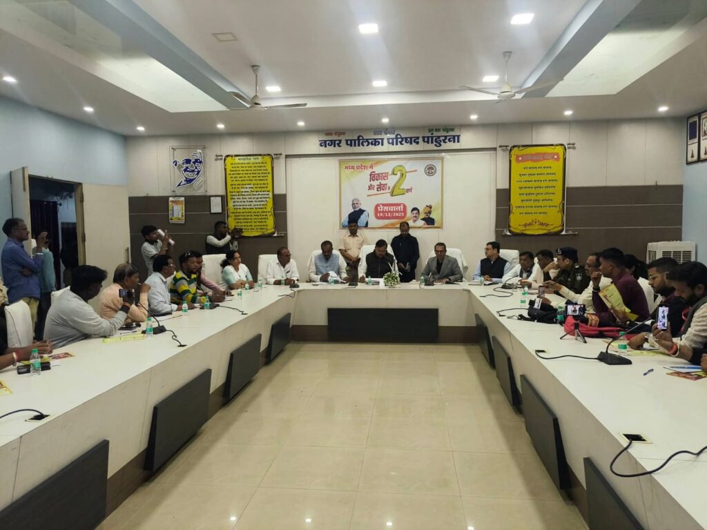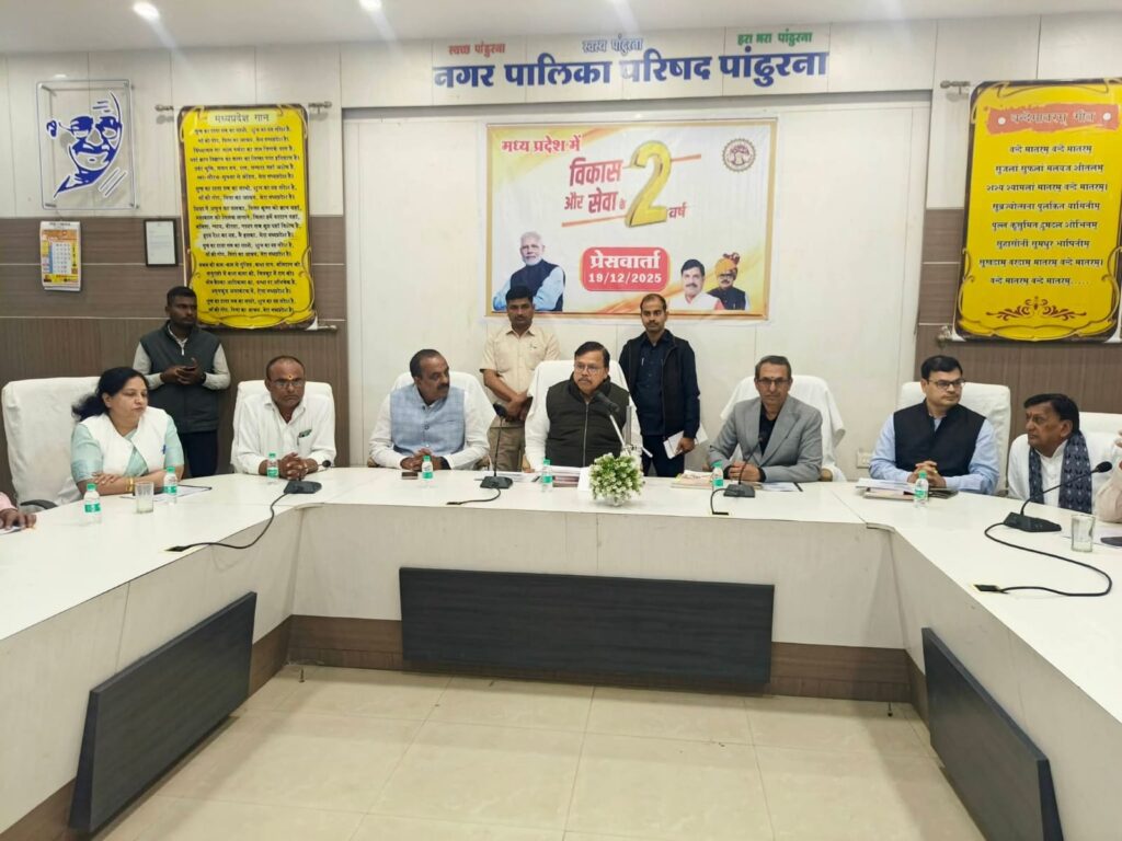 पांढुरना – राज्य सरकार के कार्यकाल के दो वर्ष पूर्ण होने के अवसर पर प्रदेश एवं पांढुर्णा जिले में हुए विकास, निवेश तथा कल्याणकारी योजनाओं की उपलब्धियों को साझा करने के उद्देश्य से आज नगरपालिका सभागार में एक प्रेस कॉन्फ्रेंस आयोजित की गई। प्रेस कॉन्फ्रेंस की अध्यक्षता प्रदेश के ऊर्जा विभाग एवं पांढुर्णा जिले के प्रभारी मंत्री श्री प्रद्युमन सिंह तोमर ने की।