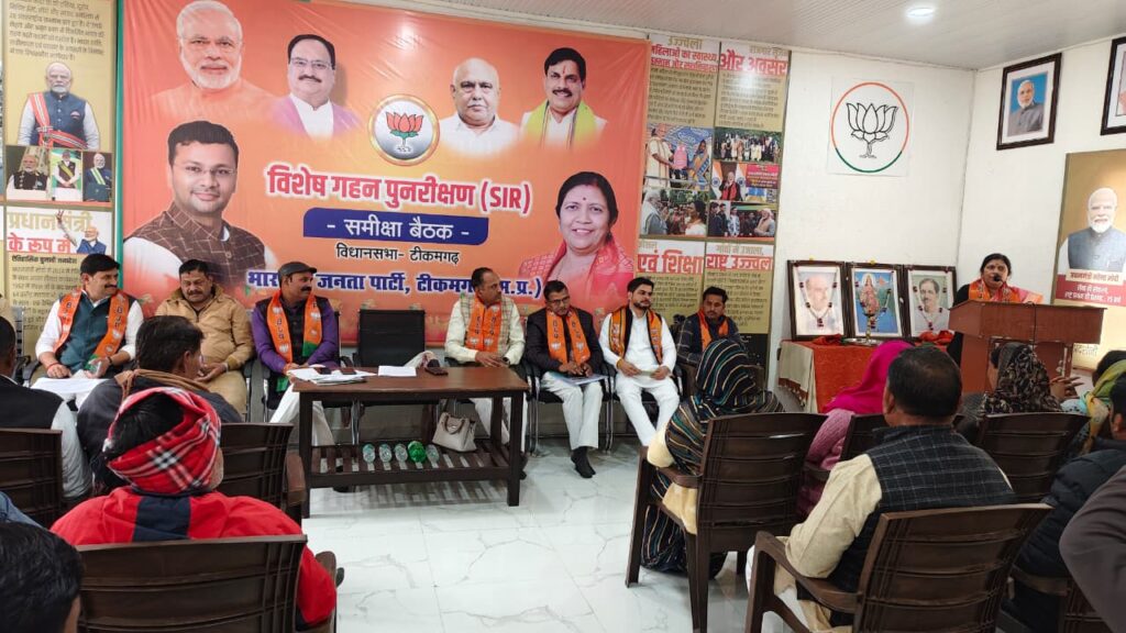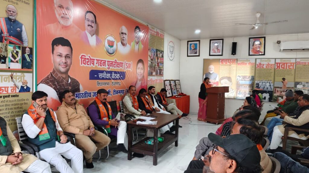 टीकमगढ़। टीकमगढ़ नगर भाजपा कार्यालय में अटल स्मृति वर्ष को लेकर कार्यक्रमों की रूपरेखा तैयार की गई तो वहीं जतारा में विधानसभा स्तरीय SIR की महत्वपूर्ण बैठक हुई। भाजपा मीडिया प्रभारी स्वप्निल तिवारी ने बताया कि टीकमगढ़ नगर भाजपा कार्यालय में भाजपा जिलाध्यक्ष श्रीमती सरोज राजपूत की मुख्य उपस्थिति में अटल स्मृति वर्ष के कार्यक्रमों को लेकर महत्वपूर्ण जिला बैठक संपन्न हुई तो वहीं जतारा SIR विधानसभा स्तरीय बैठक में जतारा विधायक हरिशंकर खटीक व भाजपा जिलाध्यक्ष श्रीमती सरोज राजपूत मुख्य रूप से उपस्थित रही। अटल स्मृति वर्ष के जिला कार्यक्रमों में संयोजक प्रतेंद्र सिंधई,सह संयोजक प्रीति शर्मा,राहुल तिवारी व रामगोपाल चौरसिया को बनाया गया है,वीर बाल दिवस कार्यक्रम प्रभारी रीतेश भदौरा को बनाया गया है,