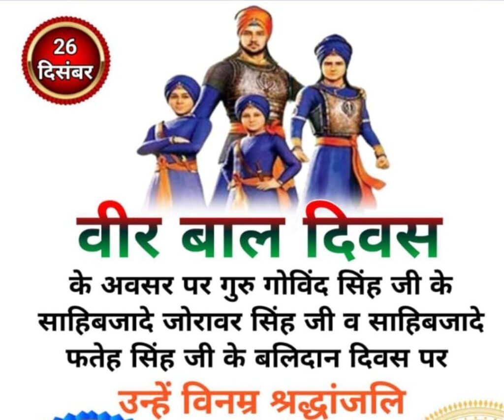 26 दिसंबर का दिन भारत के इतिहास में केवल एक तारीख नहीं, बल्कि वीरता, तप और अटूट सिद्धांतों का प्रतीक है। आज पूरा देश ‘वीर बाल दिवस’ मना रहा है। यह दिन गुरु गोबिंद सिंह जी के चार साहिबजादों—बाबा अजीत सिंह, बाबा जुझार सिंह, बाबा जोरावर सिंह और बाबा फतेह सिंह के बलिदान को समर्पित है। विशेषकर छोटे साहिबजादों की शहादत दुनिया के इतिहास की सबसे हृदयविदारक और प्रेरणादायी घटनाओं में से एक है।