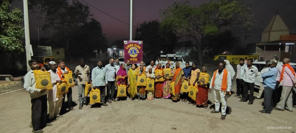 आस्था सामाजिक संस्था आणि लायन्स क्लबच्या सोलापूर वतीने भांबेवाडी आणि हिंगणी गावातील 100 निराधारांना चादर सतरंजी, ब्लॅंकेट वाटप
