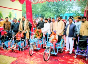 वितरित उपकरण: ट्राई साइकिल, बैसाखी, व्हीलचेयर, सीपी चेयर, स्मार्ट केन, ब्रेल किट, कैलीपर, रोलेटर, एमआर किट, कान की मशीन, वॉकर, लो विजन किट।