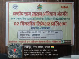 वैनी ,,,, सोनभद्र के विकास खण्ड नगवां ब्लॉक में राष्ट्रीय ग्राम स्वराज अभियान के अंतर्गत ग्राम प्रधान पंचायत प्रतिनिधियों का डिजिटल लिटरेसी विषय पर 2 दिवसीय रिफ्रेशर प्रशिक्षण नगवां ब्लॉक में 8 जनवरी से 9 जनवरी तक किया गया लेकिन इस प्रशिक्षण में ग्राम प्रधान व पंचायत प्रतिनिधि बहुत कम ही उपस्थित थे