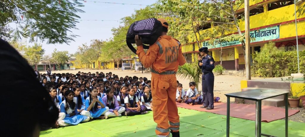 पांढुरना – गृह मंत्रालय भारत सरकार के निर्देशानुसार पीएम श्री शासकीय संजय गांधी उच्चतर माध्यमिक विद्यालय, तिगांव (विकासखंड पांढुर्णा, जिला पांढुर्णा) में स्कूल सेफ्टी प्रोग्राम के अंतर्गत 11वीं बटालियन एनडीआरएफ, वाराणसी की टीम द्वारा विद्यार्थियों एवं शिक्षकों को आपदा प्रबंधन का विशेष प्रशिक्षण प्रदान किया गया।
