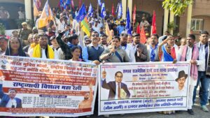 तिरनाही में अंबेडकर पार्क की भूमि को सुरक्षित करने और सदर तहसीलदार के खिलाफ कार्रवाई करने की मांग को लेकर विभिन्न दलों ने कलेक्ट्रेट पर किया जोरदार प्रदर्शन।
