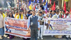 सोनभद्र, गुरुवार को भाकपा, माकपा, माले, आज़ाद समाज पार्टी, भीम आर्मी, राष्ट्रीय पिछड़ा मोर्चा व गोंगपा के कार्यकर्ताओं ने संयुक्त रूप से ग्राम तिरनाही (पकरी) के अंबेडकर पार्क की भूमि पर प्लाटरों द्वारा राबर्ट्सगंज तहसीलदार की मिली भगत से व्यक्तिगत लाभ के उद्देश्य से किए जा रहे सड़क निर्माण को रोकने को लेकर मुख्य मार्ग से जूलूस निकालकर जिलाधिकारी कार्यालय पर जोरदार प्रदर्शन किया। जहां वक्ताओं ने कहा कि