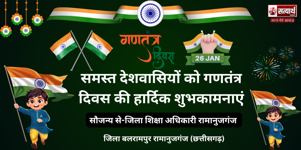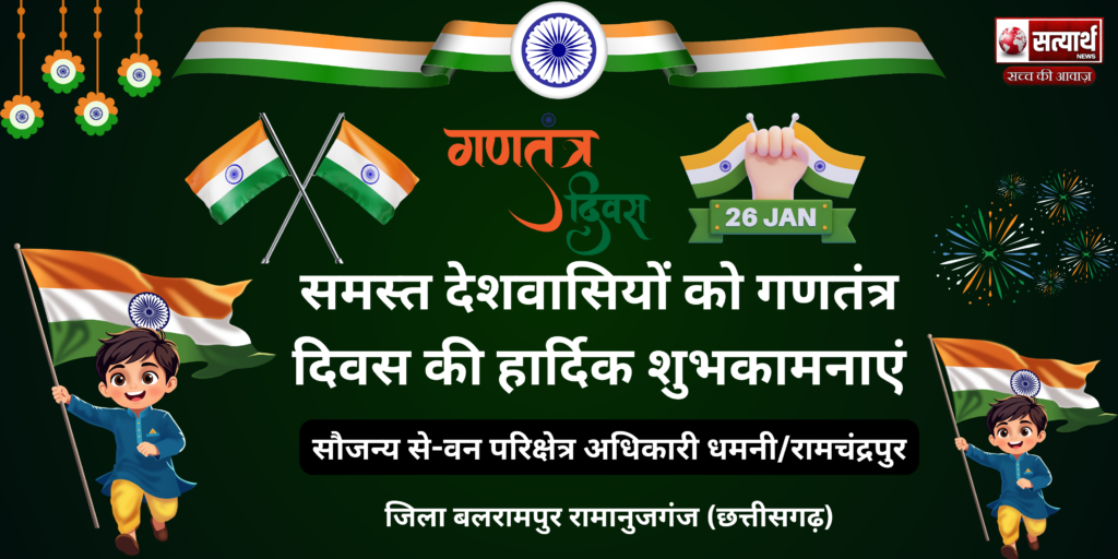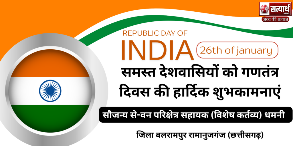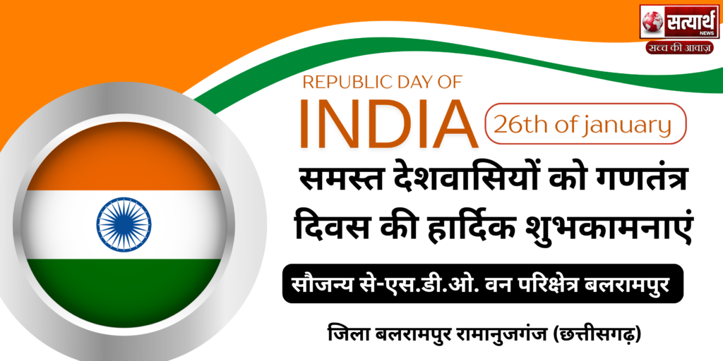 छत्तीसगढ़ बलरामपुर वन विभाग की समस्त टीम की तरफ से गणतंत्र दिवस की हार्दिक शुभकामनाएं Satyarath Jan 26, 2026 0 वन विभाग की समस्त टीम की तरफ से गणतंत्र दिवस की हार्दिक शुभकामनाएं Spread the love