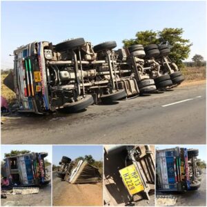 रीठी (कटनी): बड़गांव के निकट सीमेंट लदे ट्रक का भीषण हादसा, चालक गंभीर रूप से घायल