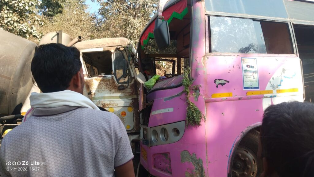 जशपुर, 12 फरवरी 2026। बगीचा थाना क्षेत्र अंतर्गत रौनी घाटी में गुरुवार दोपहर एक भीषण सड़क हादसा हो गया। तेज रफ्तार हाइवा ने सामने से आ रही सवारी बस को जोरदार टक्कर मार दी। टक्कर इतनी जबरदस्त थी कि दोनों वाहनों के अगले हिस्से बुरी तरह क्षतिग्रस्त हो गए और बस में सवार दर्जनों यात्री घायल हो गए।