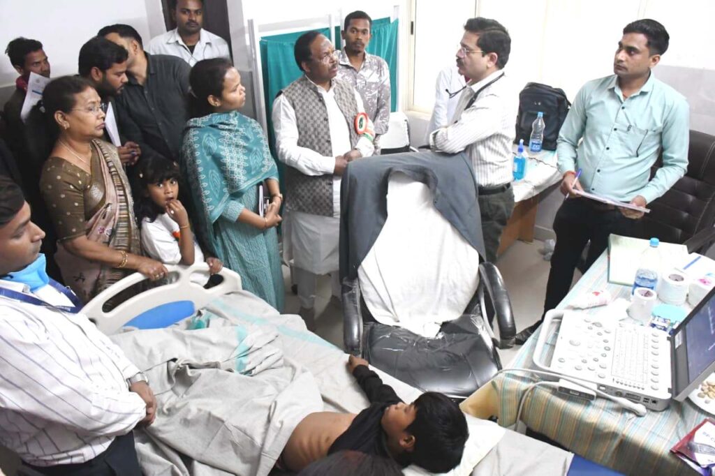 इस दौरान मंत्री श्री नेताम ने उपस्थित अतिथियों’ के साथ जिला अस्पताल में चल रहे जांच शिविर का निरीक्षण किया और विशेषज्ञ चिकित्सकों द्वारा दी जा रही सेवाओं का अवलोकन किया। उन्होंने वहां भर्ती मरीजों से मिलकर उनके स्वास्थ्य की जानकारी ली और उनका कुशलक्षेम जाना। शिविर जांच हेतु लगभग 448 पंजीयन किया गया। जिसमे 20 बच्चे पॉजिटिव पाए गए। जिन्हें उच्च उपचार हेतु रायपुर भेजा जाएगा।