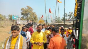 घोरावल/सोनभद्र स्थानीय तहसील स्थित सत्तद्वारी में विराजमान लक्ष्मी नारायण विग्रह का शोभायात्रा १० बजे निकला जिसमें शास्त्र विधि विधान से घंटे ,कलश,शंख कि ध्वनि के साथ आचार्य द्वारा मंत्रोच्चार के साथ शोभा यात्रा शिवद्वार मंदिर से प्रारंभ हुआ जिसमें क्षेत्रीय लोगों कि भीड़ रही विजय कनौजिया द्वारा बताया गया कि लक्ष्मी नारायण विग्रह जो हल के जोताई करते समय २०१३ में जमीन से हल से फंस कर प्रकट हुए उनका भव्य मंदिर का निर्माण शिवद्वार मंदिर के बगल में अपने भूमि में सार्वजनिक सहयोग से हुआ जिस मंदिर का प्राण प्रतिष्ठा २६/०२/२०२६ को होना है आज मूर्ति का शोभा यात्रा निकाल कर मंदिर कि प्राण प्रतिष्ठा कि तैयारी चल रही हैं शोभा यात्रा में लवकुश,संजय,वकील,लक्ष्मीकांत,अमित,विनीत,सियाराम यादव,गुलाब समेत अन्य क्षेत्रवासी भक्तगण मौजूद रहे।
