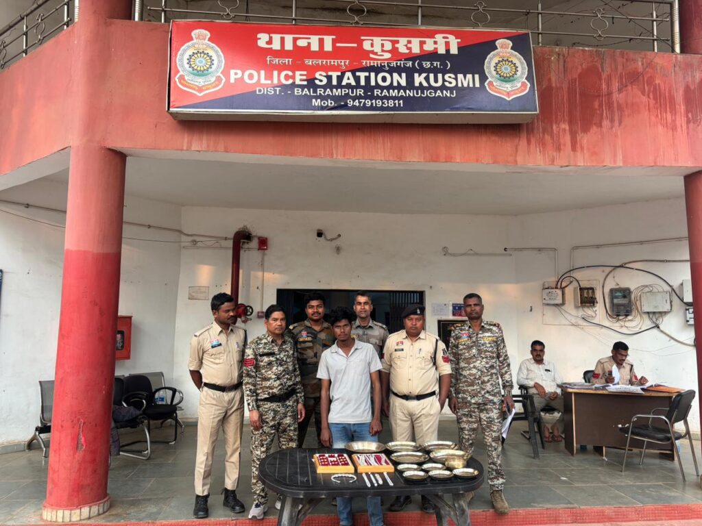 प्रार्थी की रिपोर्ट पर थाना कुसमी में अपराध क्रमांक 06/2026 धारा 305(a), 331(2) बीएनएस के तहत मामला दर्ज कर जांच शुरू की गई। जांच के दौरान संदेह के आधार पर पुलिस ने ग्राम बकसपुर निवासी गाजेश्वर उर्फ छोटू पैकरा (22 वर्ष) को हिरासत में लेकर पूछताछ की। पूछताछ में आरोपी ने चोरी की घटना स्वीकार कर ली।