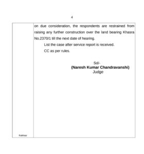 दिनांक 18 मार्च 2026 को छत्तीसगढ़ हाईकोर्ट, बिलासपुर ने रिट याचिका क्रमांक 1167/2026 की सुनवाई करते हुए स्पष्ट निर्देश दिया था कि खसरा नंबर 2370/1 पर अगली सुनवाई तक किसी भी प्रकार का निर्माण कार्य नहीं किया जाएगा। न्यायालय ने यह आदेश भूमि विवाद और प्रस्तुत तथ्यों को ध्यान में रखते हुए दिया था, ताकि यथास्थिति बनी रहे। लेकिन, जमीनी हकीकत इस आदेश के ठीक विपरीत दिखाई दे रही है।