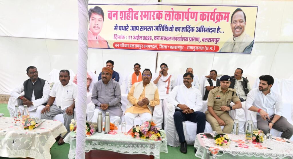 बलरामपुर, 11 अप्रैल 2026 / आदिम जाति विकास, कृषि विकास एवं किसान कल्याण तथा जैव प्रौद्योगिकी, मछली पालन, पशुधन विकास विभाग के मंत्री रामविचार नेताम बलरामपुर-रामानुजगंज जिले के प्रवास पर पहुंचे। इस दौरान उन्होंने वनमंडलाधिकारी कार्यालय परिसर में वन शहीद स्मारक का लोकार्पण किया और श्रद्धांजलि अर्पित की। अन्य जनप्रतिनिधियों एवं अधिकारियों ने भी श्रद्धा सुमन अर्पित किया।