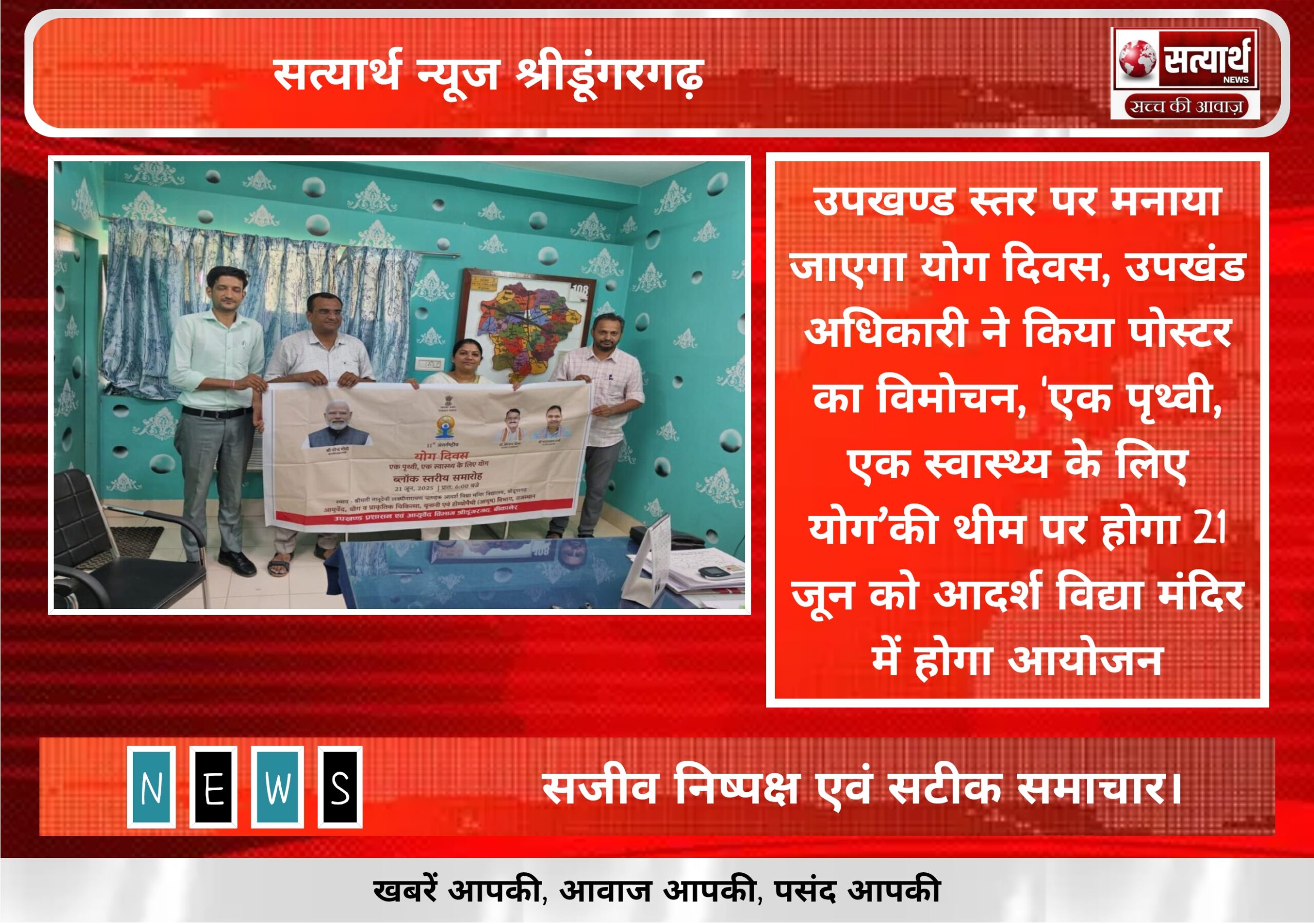 सत्यार्थ न्यूज श्रीडूंगरगढ़-सवांददाता ब्यूरो चीफ उपखण्ड क्षेत्र में 11वें अन्तर्राष्ट्रीय योग दिवस के उपलक्ष्य में आयोजित होने वाले मुख्य कार्यक्रम…